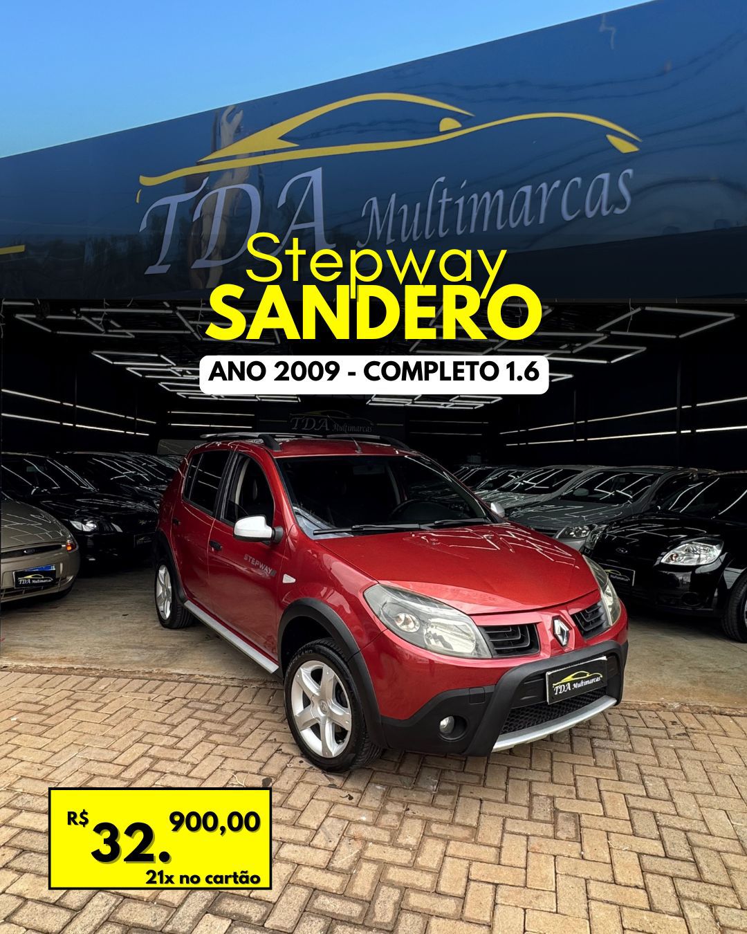 Sandero Stepway 1.6 Flex, ano/modelo 2009, versão completa, excelente estado de conservação. 🔹 Motor 1.6 Flex – forte e econômico 🔹 Direção hidráulica 🔹 Ar-condicionado 🔹 Vidros, travas e retrovisores elétricos 🔹 Rodas de liga leve 🔹 Faróis de neblina 🔹 Som original 🔹 Barras de teto Veículo revisado, confortável e pronto para o dia a dia ou viagens. 📄 Documentação em dia 🔑 Pronto para transferência 💰 Valor: R$ 32.900.00 📍 TDA Multimarcas ➡️ Aceitamos troca e facilitamos